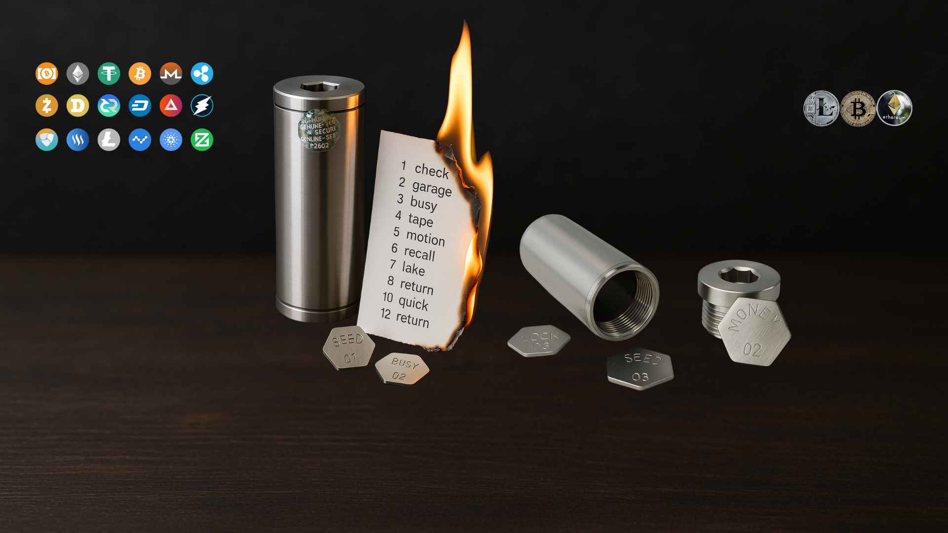 Dein Recovery Seed ist geschützt vor allen Naturkatastrophen wie beispielsweise Feuer, Wasser und Korrosion.